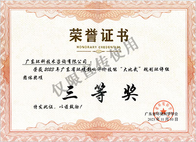 广东省环评技能“大比武”获奖证书